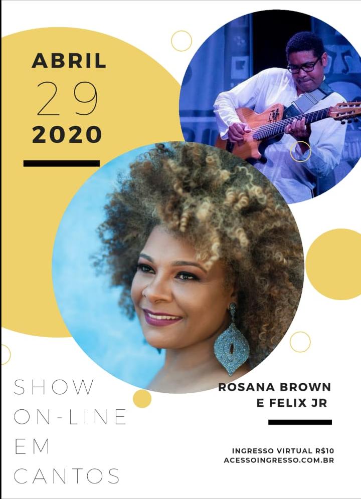 No próximo dia 29 (quarta-feira), às 20h30, a plataforma Acesso Ingresso traz para capital federal o show “Em cantos”, da carioca Rosana Brown juntamente com Félix Jr. A apresentação online será feita no espaço do restaurante Ticiana Werner para ressaltar a gastronomia de Brasília