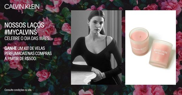 Para os clientes que fizerem compras a partir de R$ 500,00 em produtos femininos, além do frete grátis, eles ganharão uma vela aromática personalizada, trazendo um toque de aconchego para a sua casa. A ação é válida entre os dias 24 de abril e 10 de maio, não deixe de conferir!