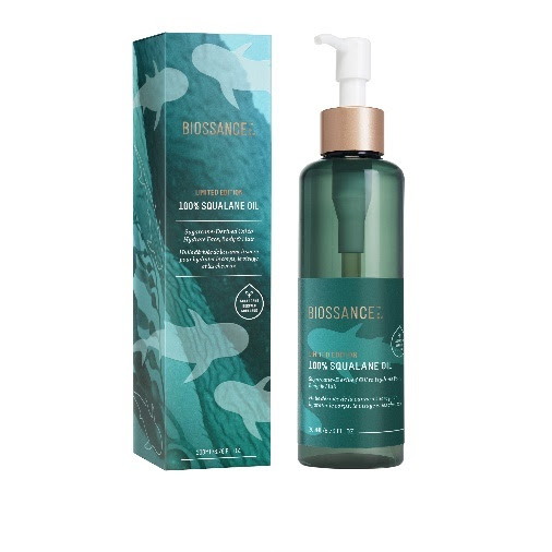 A norte-americana Biossance, marca de beleza que usa a biotecnologia para desenvolver produtos sustentáveis e primeira marca clean beauty do Brasil, traz ao mercado a edição limitada do seu Óleo 100% Esqualano, que chega na versão Jumbo, com 200ml no total – 100ml a mais do que o original- e nova embalagem em homenagem aos mais de 2 milhões de tubarões salvos por ano pela marca.