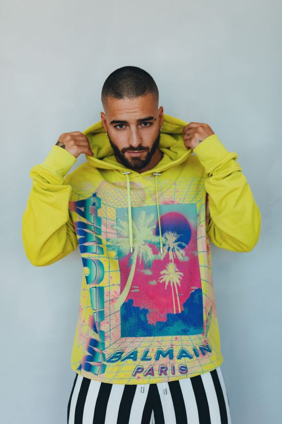 Meu amigo Maluma foi rápido em notar que o novo mood Miami Vice relax da Balmain, com todos aqueles tons pastel e padronagens fortes, eram uma combinação perfeita com seu estilo único e batida viciante.