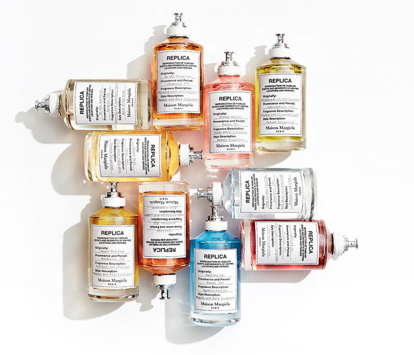 A coleção de perfumes, por sua vez, é inspirada exclusivamente na coleção de moda “REPLICA”, que traduz a memória de diferentes momentos de várias origens e períodos para as roupas e fragrâncias. As fragrâncias da coleção “Replica” instantaneamente evocam imagens e impressões de emoções positivas que refletem nossas memórias pessoais tantos quanto nosso inconsciente coletivo.