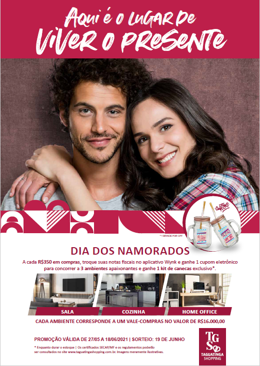 Maíra Garcia, gerente de marketing do Taguatinga Shopping, conta que as mudanças trazidas pela pandemia do novo coronavírus inspiraram o centro de compras a pensar em prêmios que se relacionam com o lar das pessoas, uma vez que muitas passaram a trabalhar em casa. “Muitos perceberam que precisavam fazer ajustes para aumentar o conforto e a praticidade em suas casas. Locais como cozinha e sala de jantar passaram a ser usados com mais frequência e olhados com mais carinho. Ambientes como home office, por exemplo, precisaram que ser criados dentro de casa. Atentos a isso, neste Dia dos Namorados, ao invés de sortear automóveis, presentearemos nossos clientes com a possibilidade de renovar os espaços de casa”, afirma.
