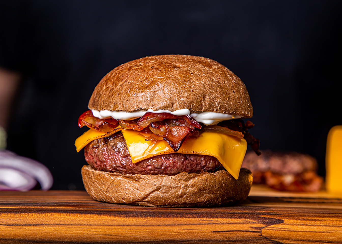 • Texas: pão australiano, hambúrguer de 120g, tomate, maionese da casa, bacon, queijo cheddar – R$23 (solo) ou R$31 (duplo);