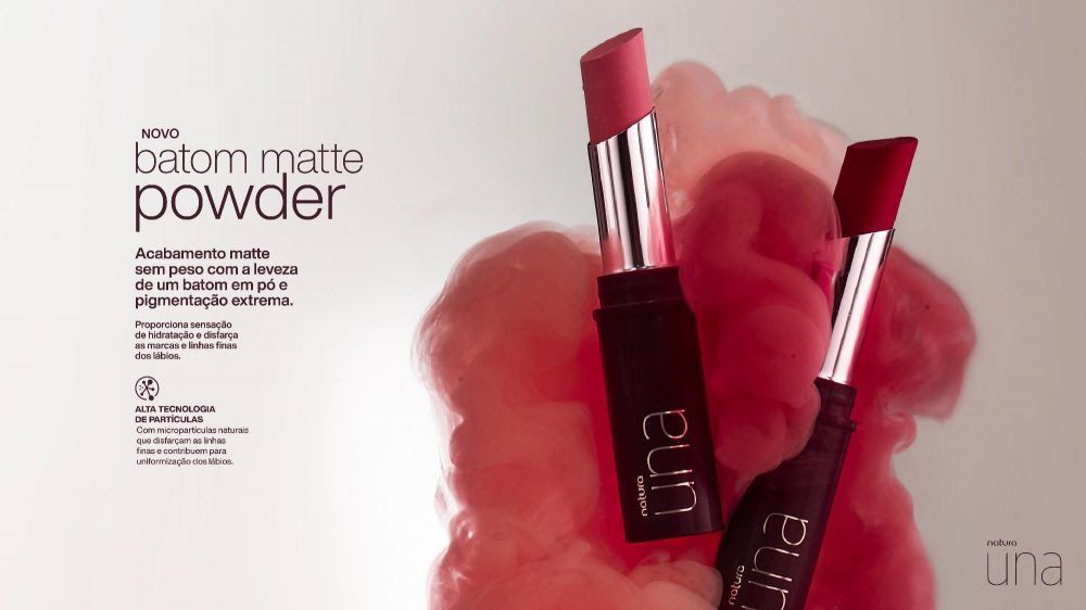 Novo Batom Matte Powder! Com acabamento matte sem peso, leveza de um batom em pó e pigmentação extrema, o item indispensável ainda conta com micropartículas naturais que disfarçam as linhas finas e contribuem para a uniformização dos lábios.