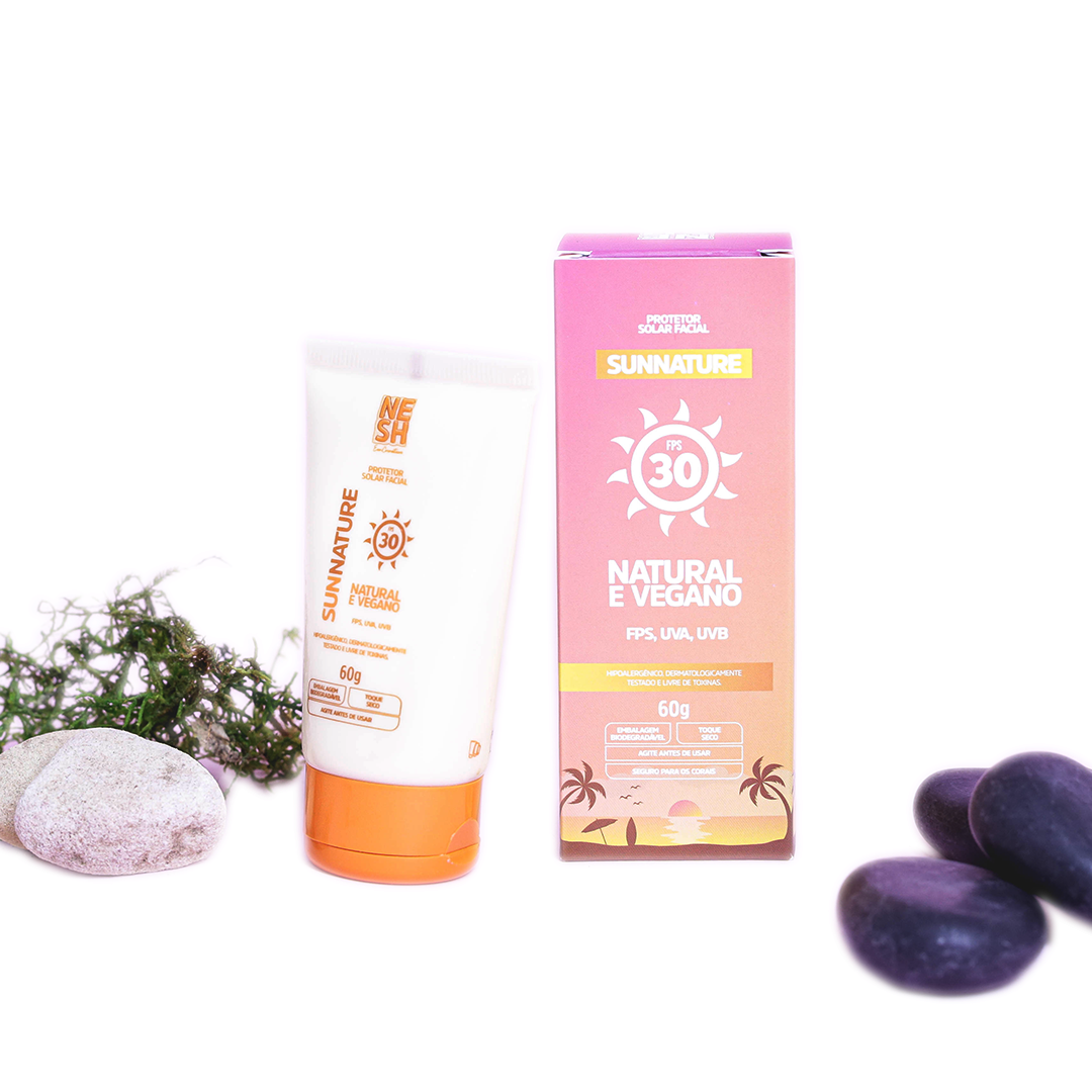 Desenvolvido pela NESH Cosméticos, Sunnature Nesh tem óleos essenciais e vegetais e extratos naturais e orgânicos em sua composição, é totalmente livre de toxinas que prejudicam a saúde e o meio ambiente, além de estimular o colágeno para manter a pele jovem e saudável